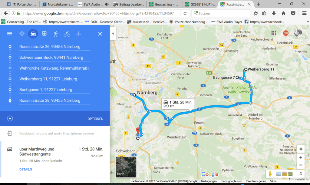 Wir haben Zweifel, ob ein Multi-Geocache über so weite Entfernungen gehen darf. Am 7.1.2017 werden wir bei einem Cacher-Event in Pruppach bedeutende Cache-Besitzer treffen und danach fragen.