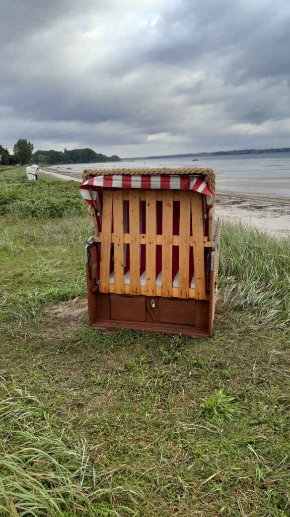 Aus der Nähe, vor allem vor Ort, habe ich noch nie die berühmten Strandkörbe gesehen. Das war schon interessant. Einen hatte der Sturm umgeweht.