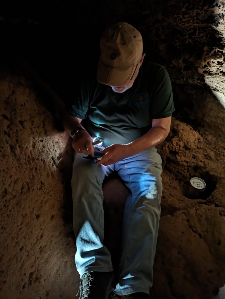 Die Höhle erweiterte sich. Im Licht der Taschenlampe trug ich uns ins Logbuch ein, das Armin auf einer Art Empore gefunden hatte.