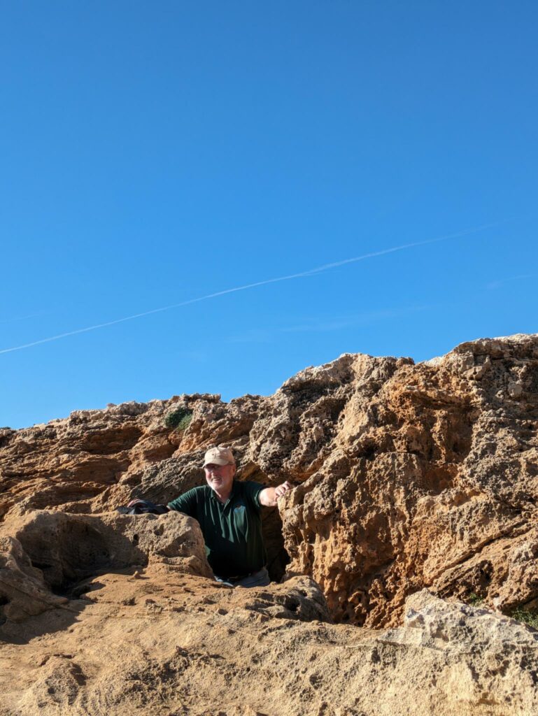 Den Steinbruch auf den unteren drei Bildern haben wir im Jahr 2018 besonders untersucht. Hier haben die Inselbewohner Kalksandstein, Mare genannt, für den Bau ihrer Häuser, unter anderem auch für Kirchen und Burgen, abgebaut. Für einen so genannten "Earth-Cache", der immer zu solchen geologisch interessanten Stellen führt, musste ich Fragen beantworten, und meine Anwesenheit durch ein Foto belegen.