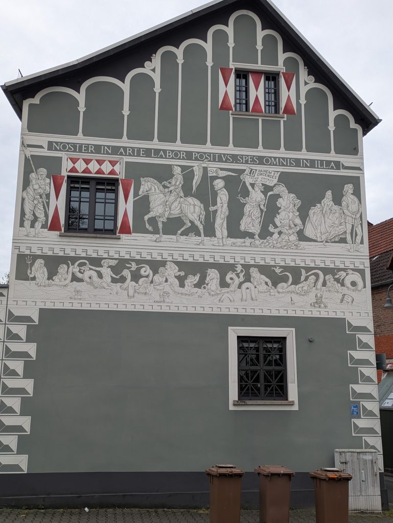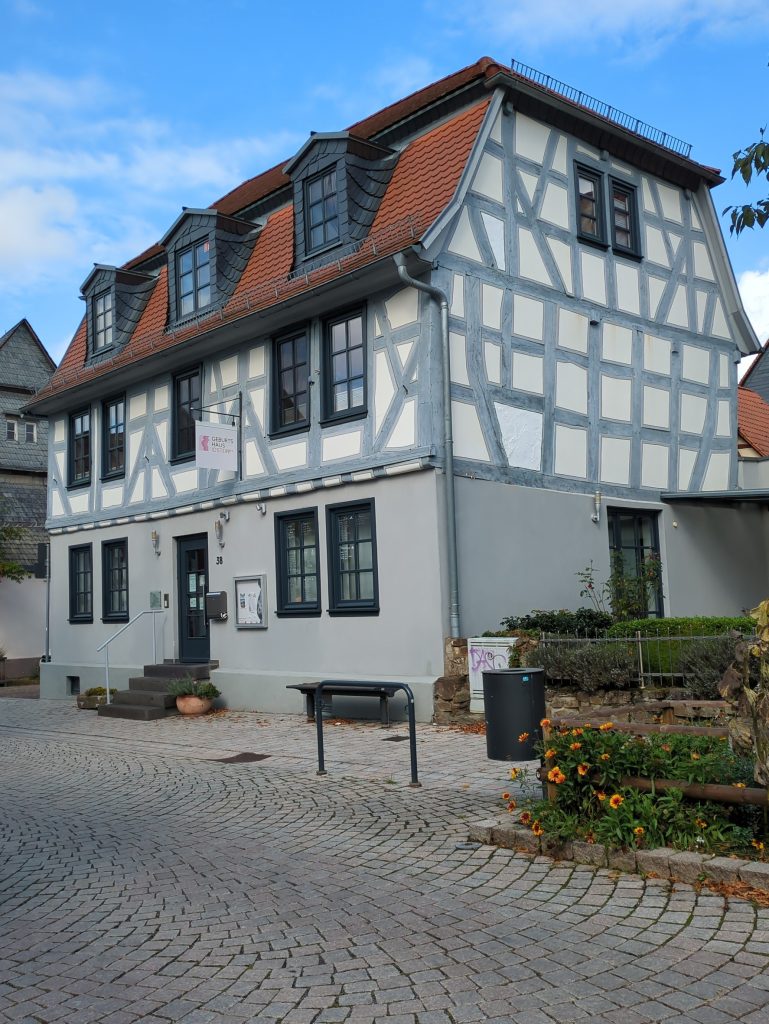 Das war das erste Fachwerkhaus, das ich sah. Und das Haus hat eine tolle Geschichte. Es ist das Geburtshaus der Gemeinde. Die werdenden Mütter werden hier vor, während und nach der Geburt umsorgt. In den Fenstern unten rechts sind die Neugeborenen jeden Jahres mit ihrem Vornamen notiert.