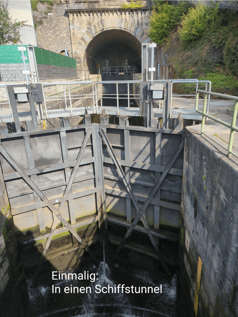 Hier konnte ich etwas angeblich einmaliges besichtigen. Um die Lahn besser nutzen zu können, hat man einen Tunnel für Schiffe gebaut.