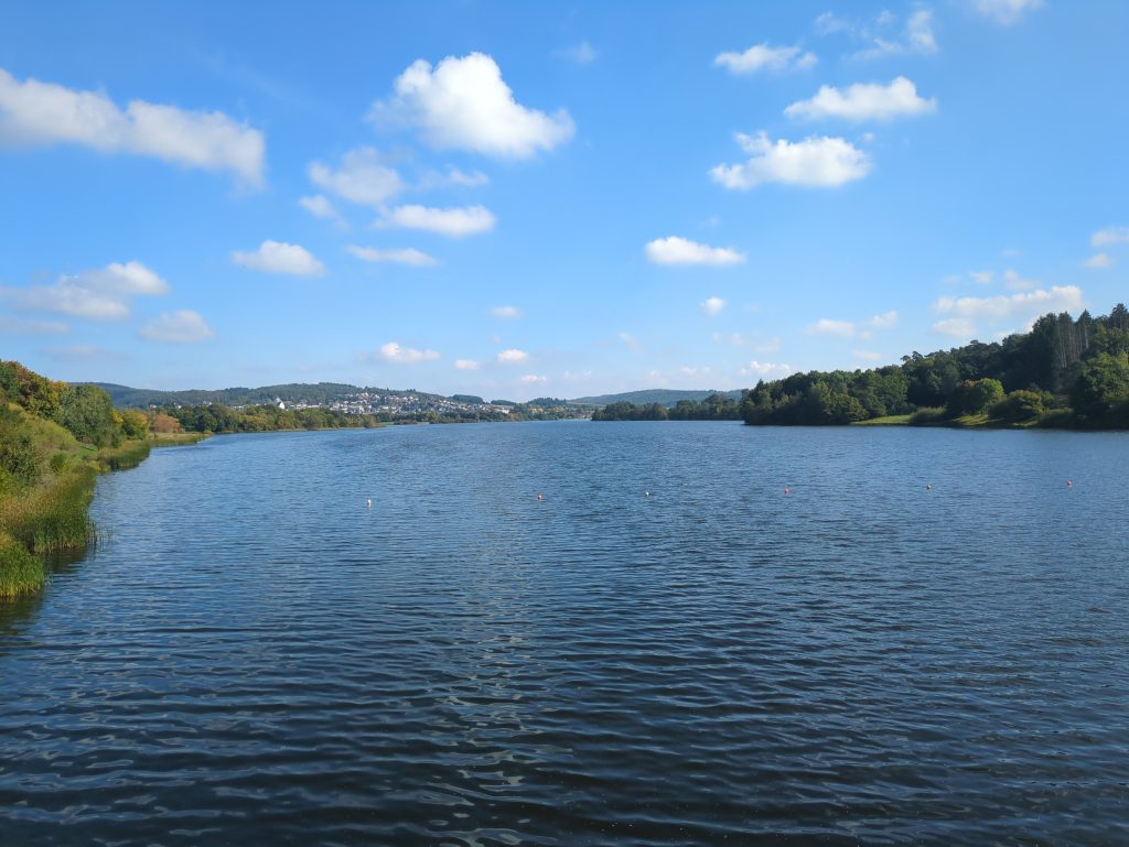 Im Vorbeifahren sah ich ein Schild "Aartalsee". Kurz entschlossen setzte ich meinen Blinker, bog ab und fuhr zu diesem See. Nach dem "Pflastertreten" der vergangenen Tage hatte ich Lust, mich in der Natur zu bewegen.