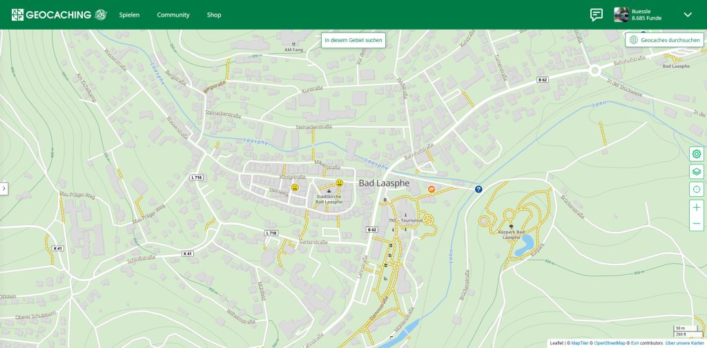 Es ist schwer zu erkennen, aber die beiden gelben Smileys links neben dem Schriftzug "Bad Laasphe" sind zwei Geocaches, die ich zusammen mit Christiane am 7. Juli 2021 gefunden habe. Ich muss gestehen, dass ich mich daran nicht erinnerte. Mein Gedächtnis ist leider nicht mehr bei mir.