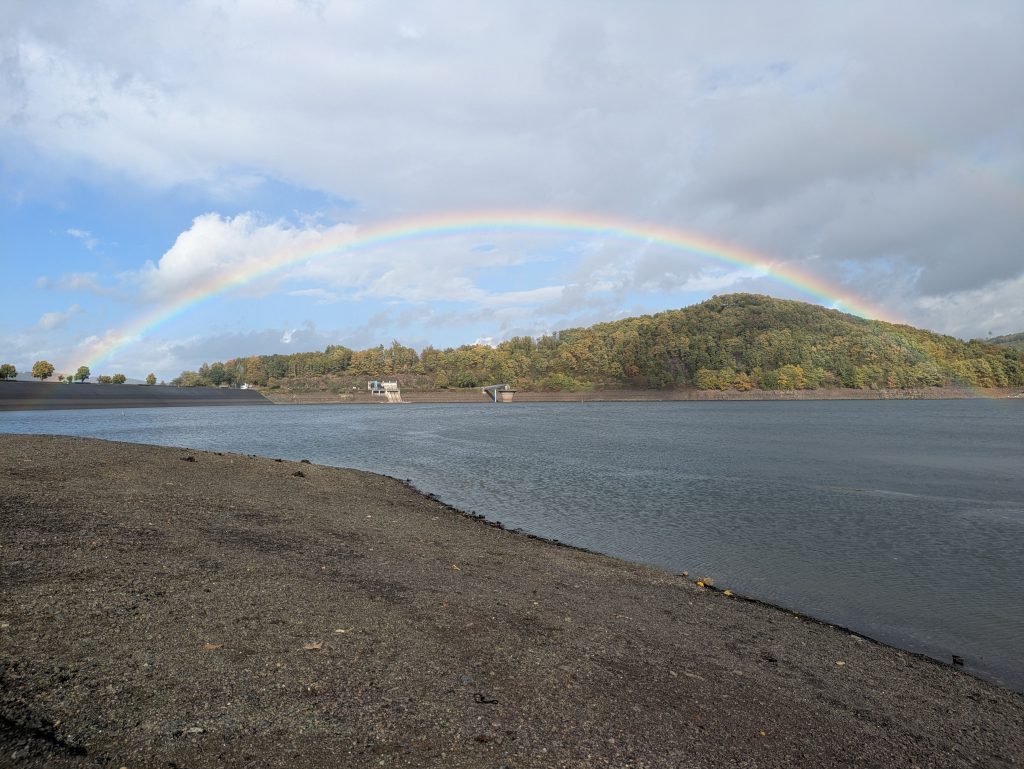Am nächsten Tag, auch um 18.00 Uhr sollte mein Lehrgruppentreffen in Attendorn beginnen. So blieb mir ausreichend Zeit, auf einem Morgenspaziergang 5 km um die Oestertalsperre herum zu gehen. In diesem See schwimmt Elke bei jedem Wetter, nach Möglichkeit täglich. Ich bewundere sie sehr dafür.